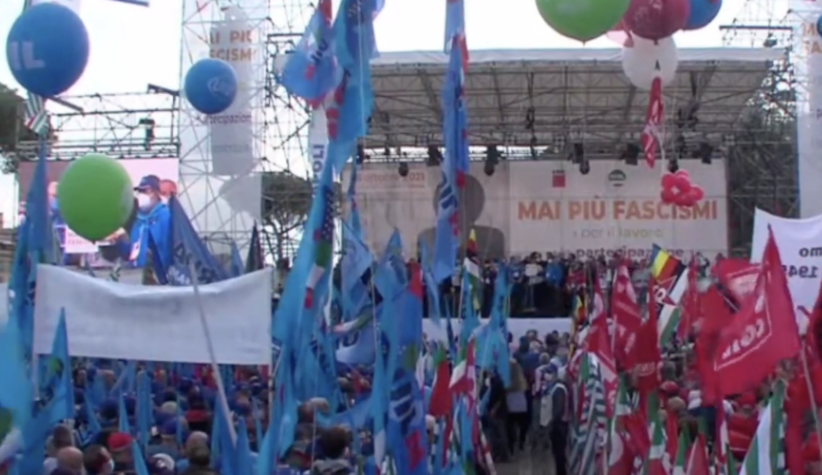 Oltre 100 mila lavoratrici e lavoratori insieme ad associazioni e cittadini in piazza San Giovanni a Roma per dire no ai fascismi e agli attacchi squadristi avvenuti contro il sindacato. Una manifestazione per affermare come la democrazia, il lavoro e i diritti delle persone siano la strada maestra per il rilancio dell’Italia anche attraverso il vaccino.